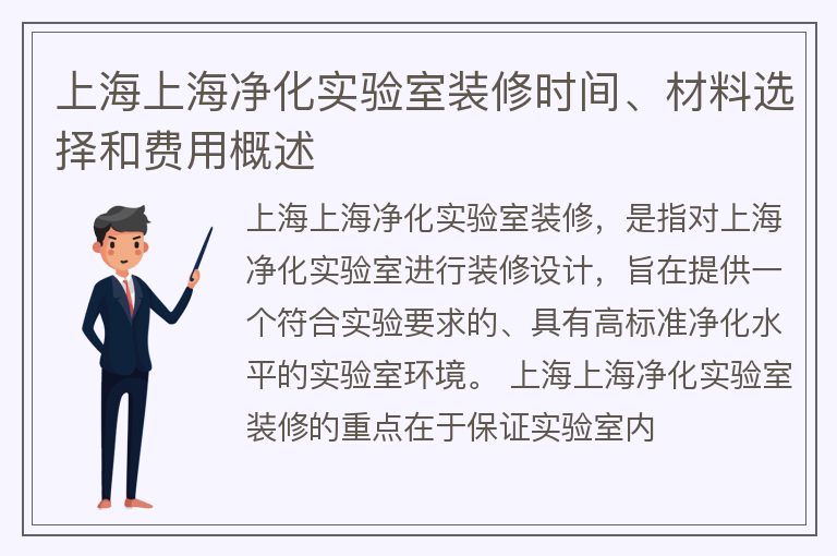上海上海净化实验室装修时间、材料选择和费用概述