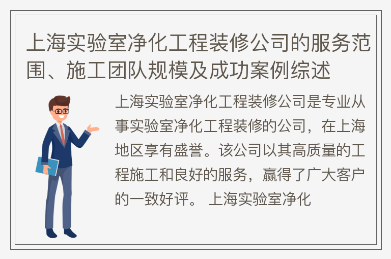 上海实验室净化工程装修公司的服务范围、施工团队规模及成功案例综述