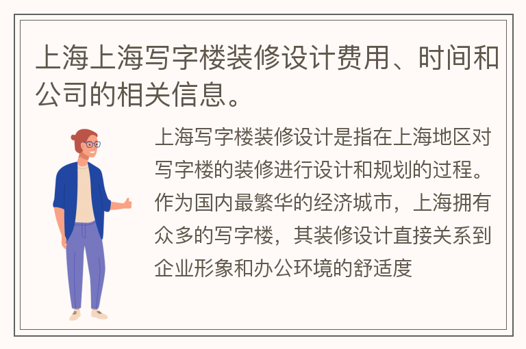 上海上海写字楼装修设计费用、时间和公司的相关信息。