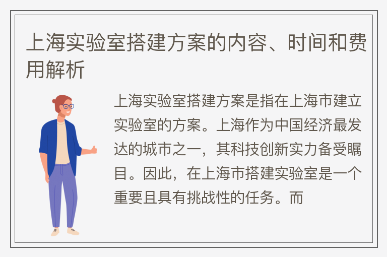 上海实验室搭建方案的内容、时间和费用解析