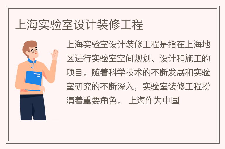 上海实验室设计装修工程是指在上海地区进行实验室空间规划、设计和施工的项目。随着科学技术的不断发展和实验室研究的不断深入,实验室装修工程扮演着重要角色。 上海作为中国......【点击详情】