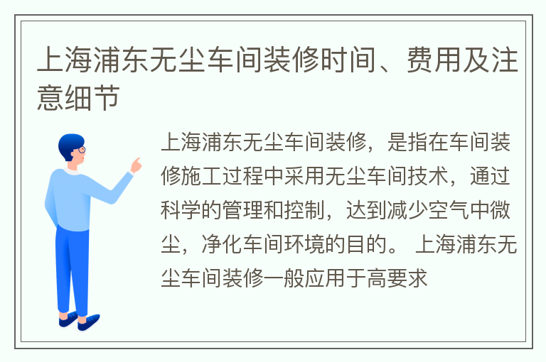 上海浦东无尘车间装修时间、费用及注意细节