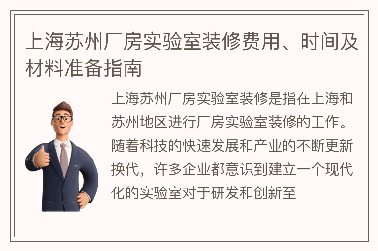 上海苏州厂房实验室装修费用、时间及材料准备指南