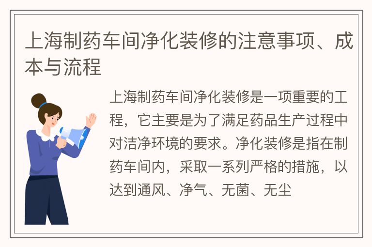 上海制药车间净化装修是一项重要的工程,它主要是为了满足药品生产过程中对洁净环境的要求。净化装修是指在制药车间内,采取一系列严格的措施,以达到通风、净气、无菌、无尘......【点击详情】