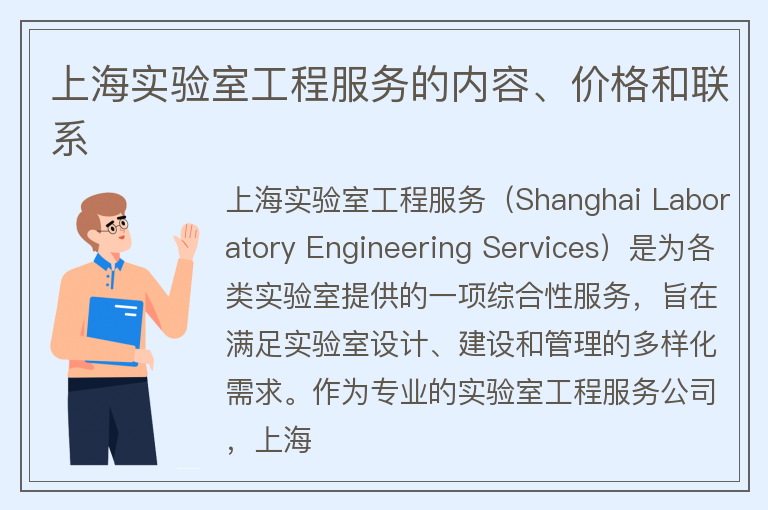 上海实验室工程服务(Shanghai Laboratory Engineering Services)是为各类实验室提供的一项综合性服务,旨在满足实验室设计、建设和管理的多样化需求。作为专业的实验室工程服务公司,上海......【点击详情】