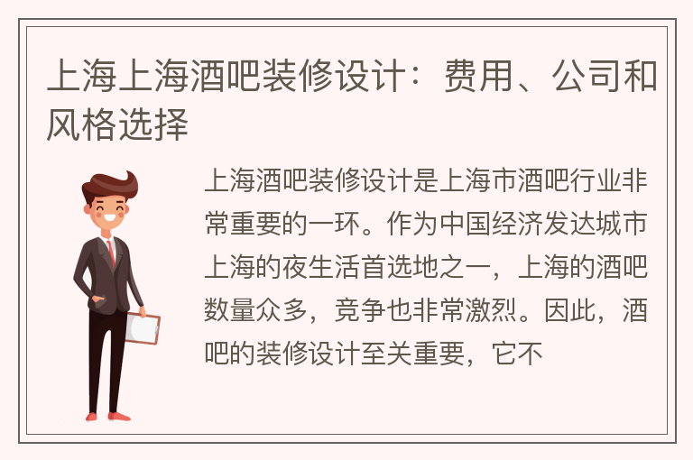 上海酒吧装修设计是上海市酒吧行业非常重要的一环。作为中国经济发达城市上海的夜生活首选地之一,上海的酒吧数量众多,竞争也非常激烈。因此,酒吧的装修设计至关重要,它不......【点击详情】