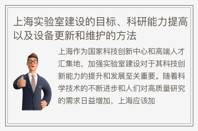 上海实验室建设的目标、科研能力提高以及设备更新和维护的方法