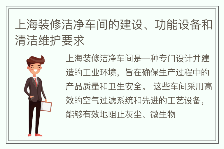 上海装修洁净车间的建设、功能设备和清洁维护要求
