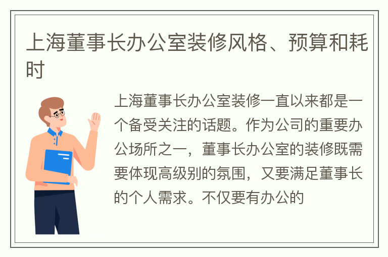 上海董事长办公室装修一直以来都是一个备受关注的话题。作为公司的重要办公场所之一,董事长办公室的装修既需要体现高级别的氛围,又要满足董事长的个人需求。不仅要有办公的......【点击详情】