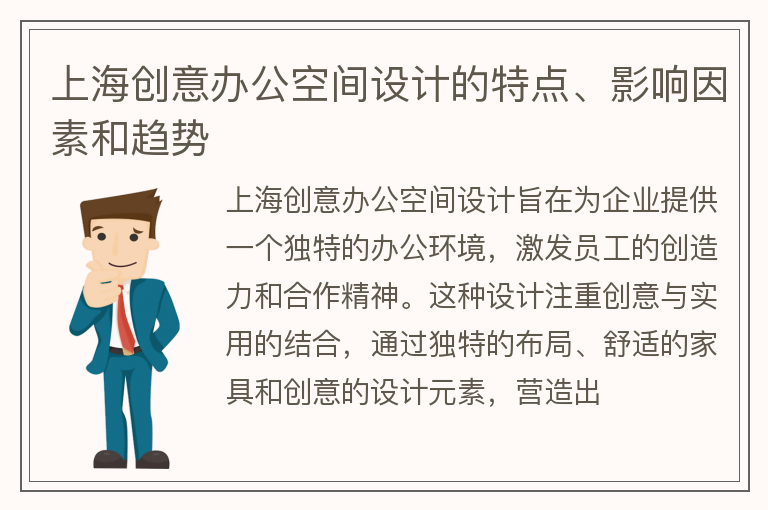 上海创意办公空间设计旨在为企业提供一个独特的办公环境,激发员工的创造力和合作精神。这种设计注重创意与实用的结合,通过独特的布局、舒适的家具和创意的设计元素,营造出......【点击详情】