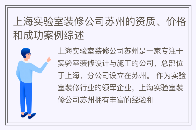 上海实验室装修公司苏州的资质、价格和成功案例综述