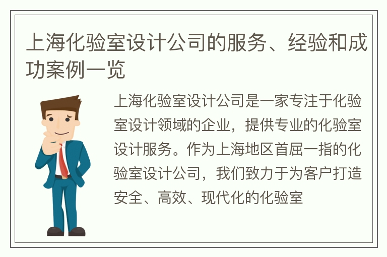 上海化验室设计公司是一家专注于化验室设计领域的企业,提供专业的化验室设计服务。作为上海地区首屈一指的化验室设计公司,我们致力于为客户打造安全、高效、现代化的化验室......【点击详情】
