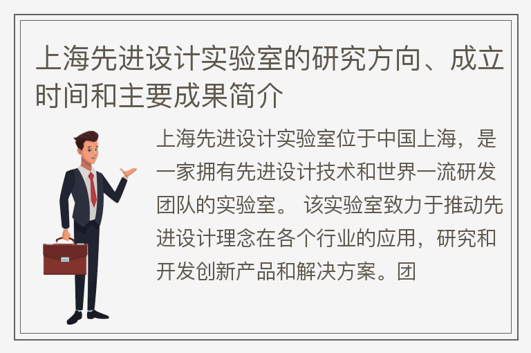 上海先进设计实验室的研究方向、成立时间和主要成果简介