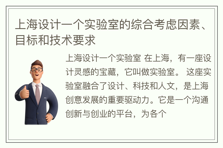 上海设计一个实验室的综合考虑因素、目标和技术要求
