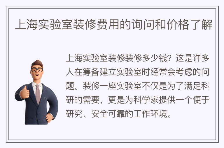 上海实验室装修装修多少钱?这是许多人在筹备建立实验室时经常会考虑的问题。装修一座实验室不仅是为了满足科研的需要,更是为科学家提供一个便于研究、安全可靠的工作环境。......【点击详情】
