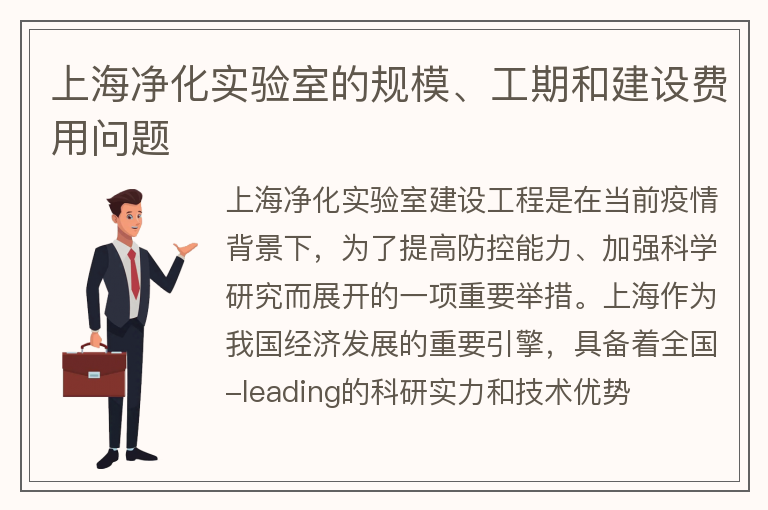 上海净化实验室建设工程是在当前疫情背景下,为了提高防控能力、加强科学研究而展开的一项重要举措。上海作为我国经济发展的重要引擎,具备着全国-leading的科研实力和技术优势......【点击详情】