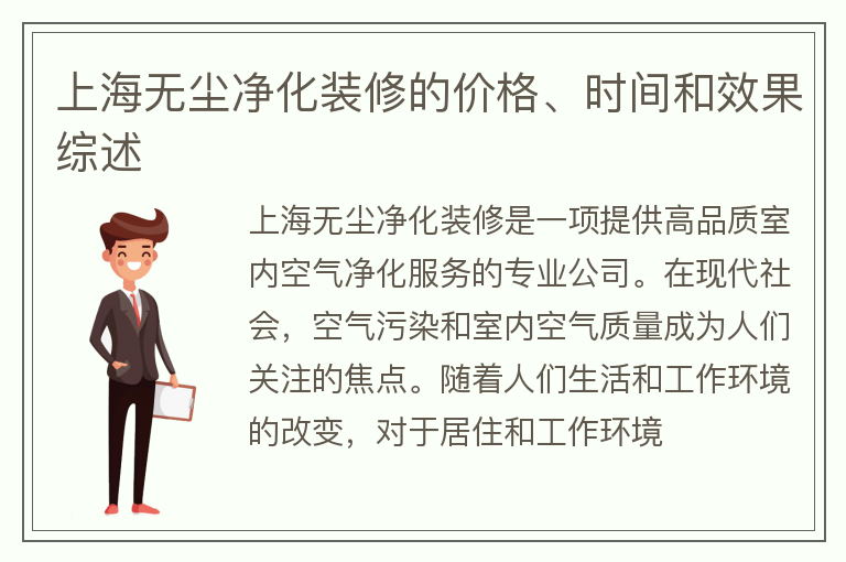 上海无尘净化装修是一项提供高品质室内空气净化服务的专业公司。在现代社会,空气污染和室内空气质量成为人们关注的焦点。随着人们生活和工作环境的改变,对于居住和工作环境......【点击详情】