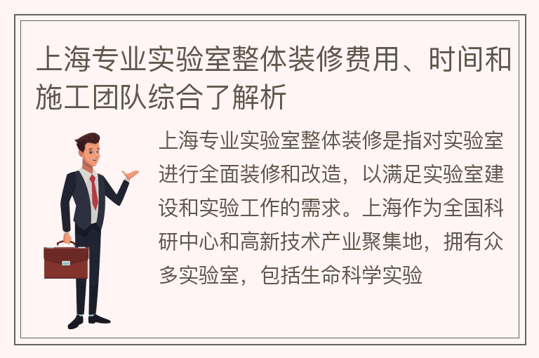 上海专业实验室整体装修费用、时间和施工团队综合了解析