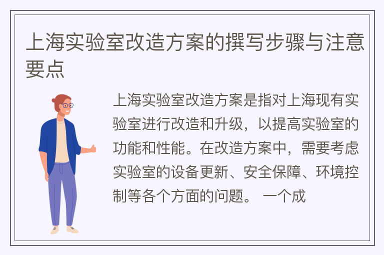 上海实验室改造方案是指对上海现有实验室进行改造和升级,以提高实验室的功能和性能。在改造方案中,需要考虑实验室的设备更新、安全保障、环境控制等各个方面的问题。 一个成......【点击详情】