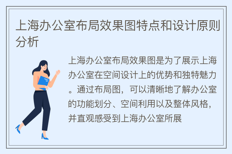 上海办公室布局效果图是为了展示上海办公室在空间设计上的优势和独特魅力。通过布局图,可以清晰地了解办公室的功能划分、空间利用以及整体风格,并直观感受到上海办公室所展......【点击详情】