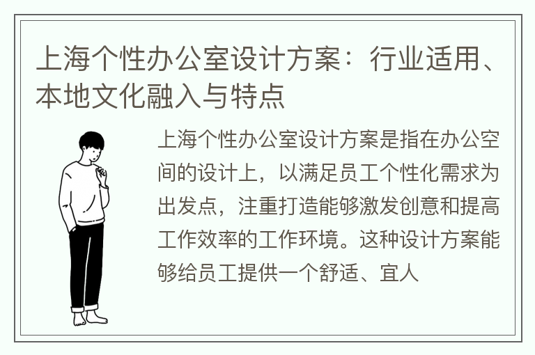 上海个性办公室设计方案:行业适用、本地文化融入与特点
