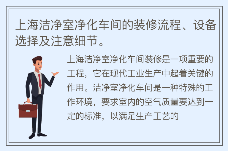 上海洁净室净化车间的装修流程、设备选择及注意细节。