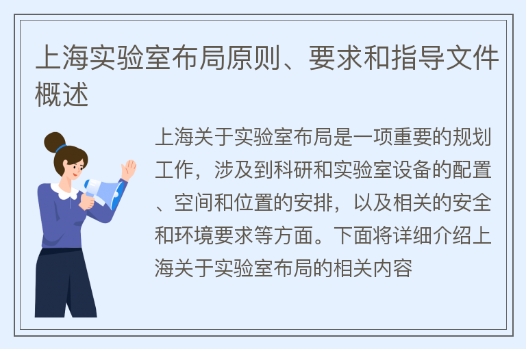 上海关于实验室布局是一项重要的规划工作,涉及到科研和实验室设备的配置、空间和位置的安排,以及相关的安全和环境要求等方面。下面将详细介绍上海关于实验室布局的相关内容......【点击详情】