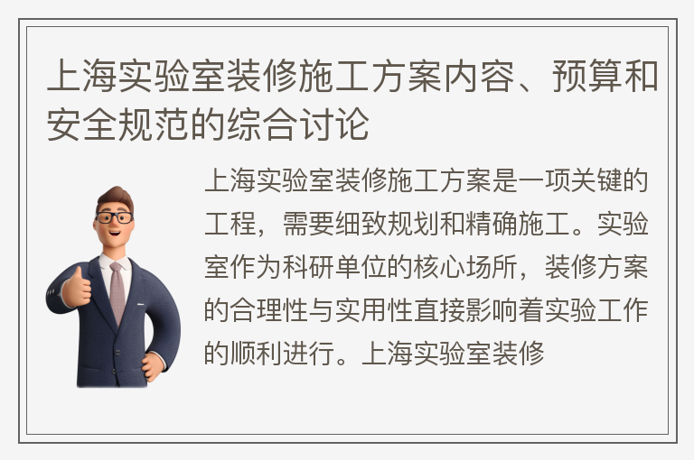 上海实验室装修施工方案内容、预算和安全规范的综合讨论