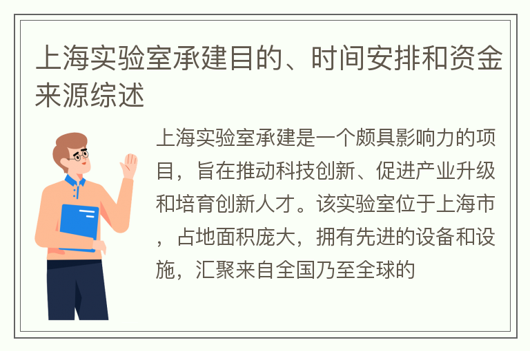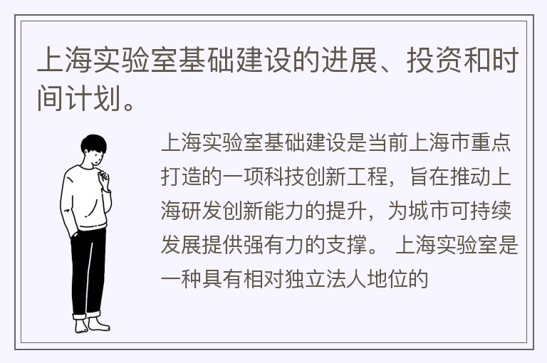 上海实验室基础建设是当前上海市重点打造的一项科技创新工程,旨在推动上海研发创新能力的提升,为城市可持续发展提供强有力的支撑。 上海实验室是一种具有相对独立法人地位的......【点击详情】