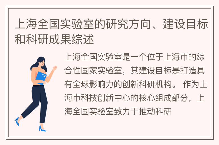 上海全国实验室的研究方向、建设目标和科研成果综述