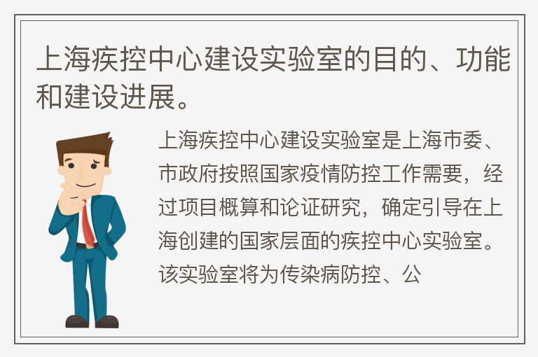 上海疾控中心建设实验室的目的、功能和建设进展。