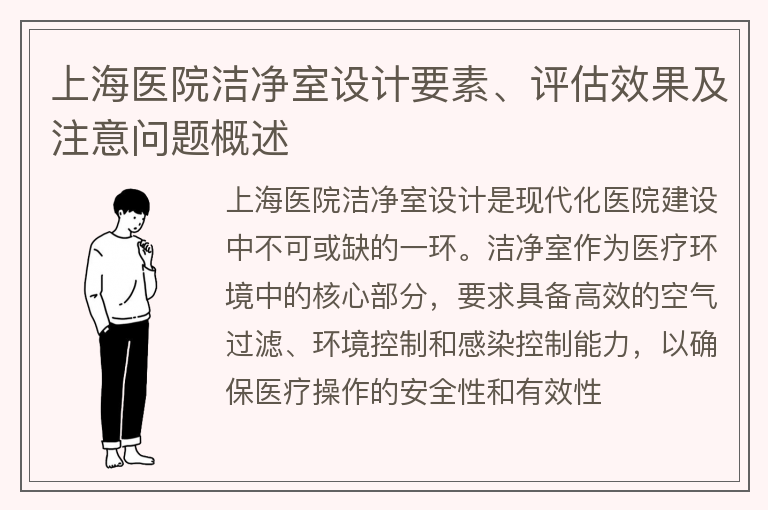上海医院洁净室设计要素、评估效果及注意问题概述