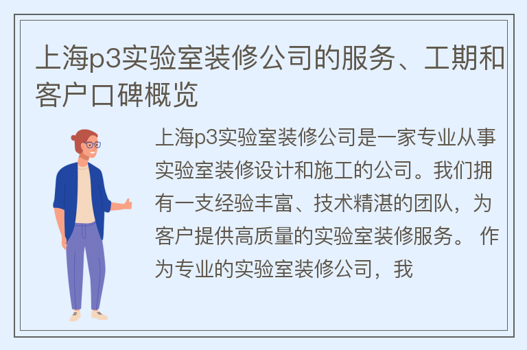 上海p3实验室装修公司的服务、工期和客户口碑概览