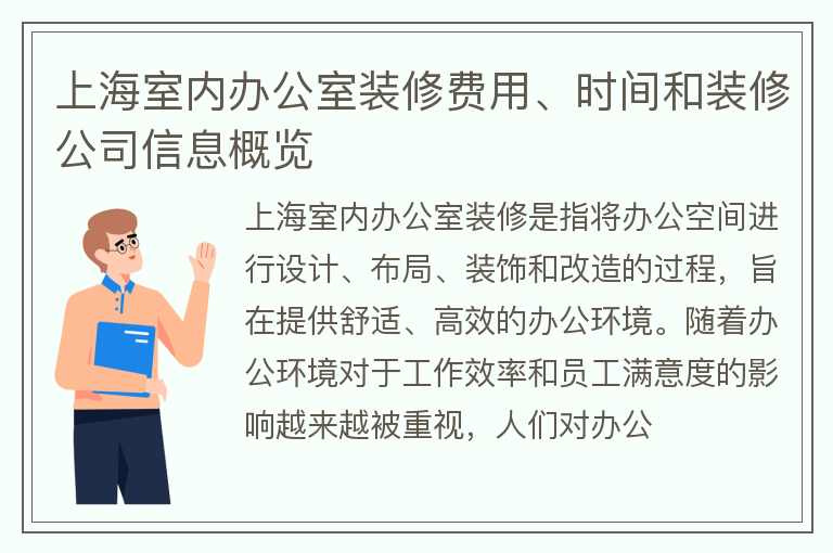上海室内办公室装修是指将办公空间进行设计、布局、装饰和改造的过程,旨在提供舒适、高效的办公环境。随着办公环境对于工作效率和员工满意度的影响越来越被重视,人们对办公......【点击详情】