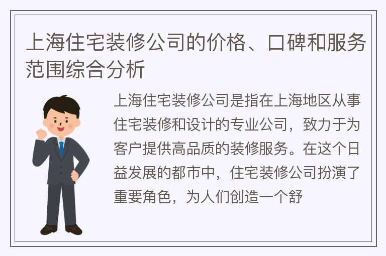 上海住宅装修公司的价格、口碑和服务范围综合分析