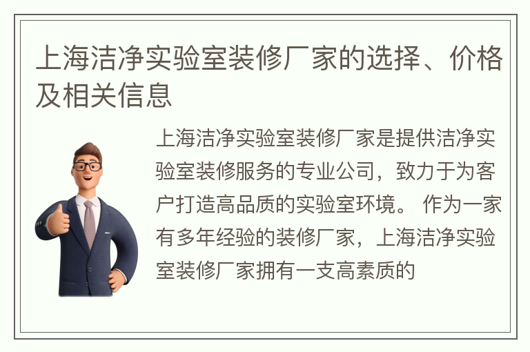 上海洁净实验室装修厂家的选择、价格及相关信息
