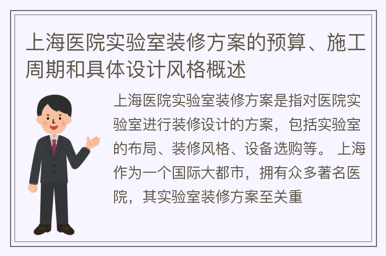 上海医院实验室装修方案的预算、施工周期和具体设计风格概述