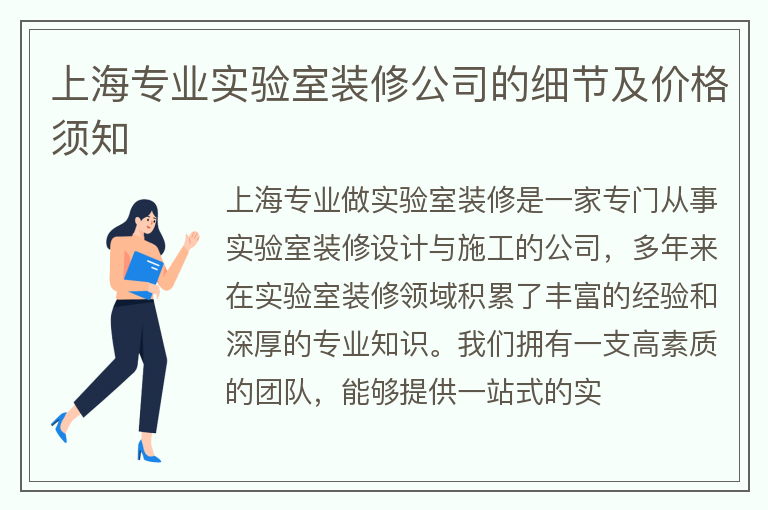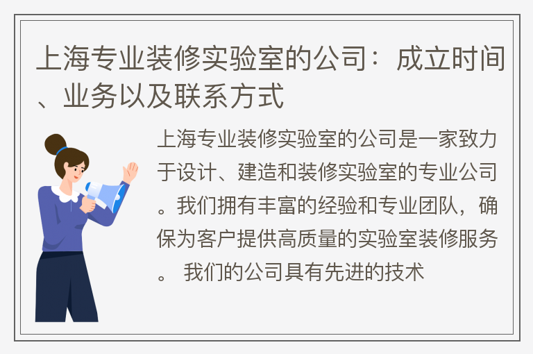上海专业装修实验室的公司:成立时间、业务以及联系方式