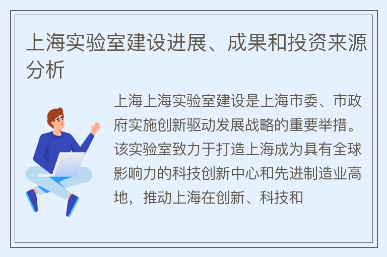 上海上海实验室建设是上海市委、市政府实施创新驱动发展战略的重要举措。该实验室致力于打造上海成为具有全球影响力的科技创新中心和先进制造业高地,推动上海在创新、科技和......【点击详情】