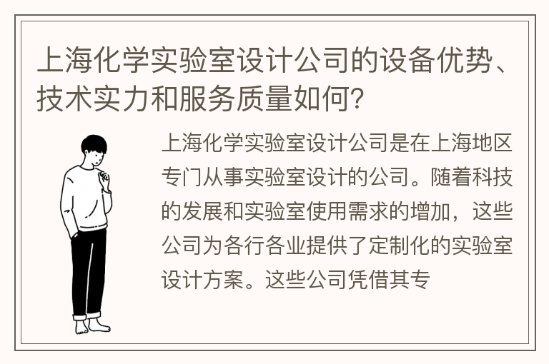 上海化学实验室设计公司的设备优势、技术实力和服务质量如何?
