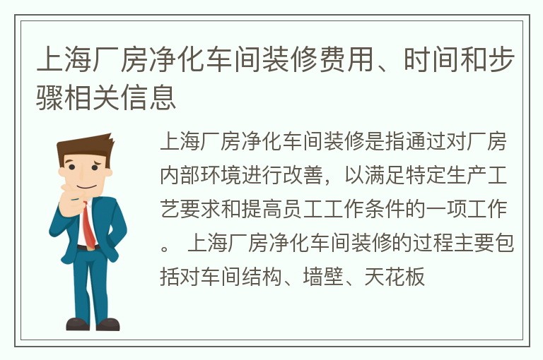 上海厂房净化车间装修费用、时间和步骤相关信息