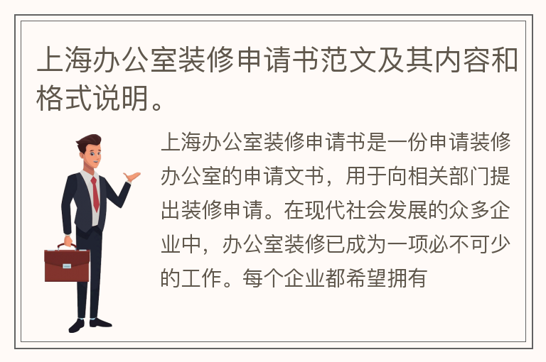 上海办公室装修申请书是一份申请装修办公室的申请文书,用于向相关部门提出装修申请。在现代社会发展的众多企业中,办公室装修已成为一项必不可少的工作。每个企业都希望拥有......【点击详情】