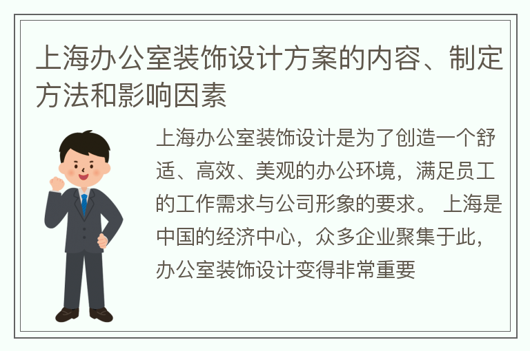 上海办公室装饰设计方案的内容、制定方法和影响因素
