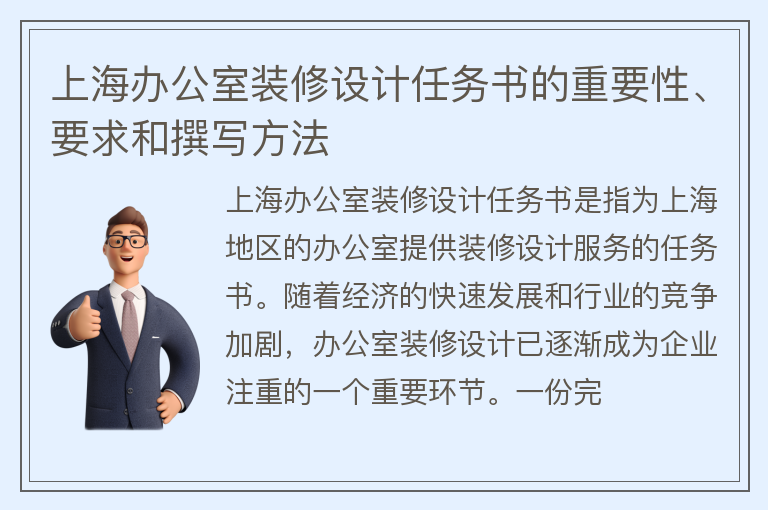 上海办公室装修设计任务书的重要性、要求和撰写方法