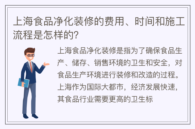 上海食品净化装修的费用、时间和施工流程是怎样的?