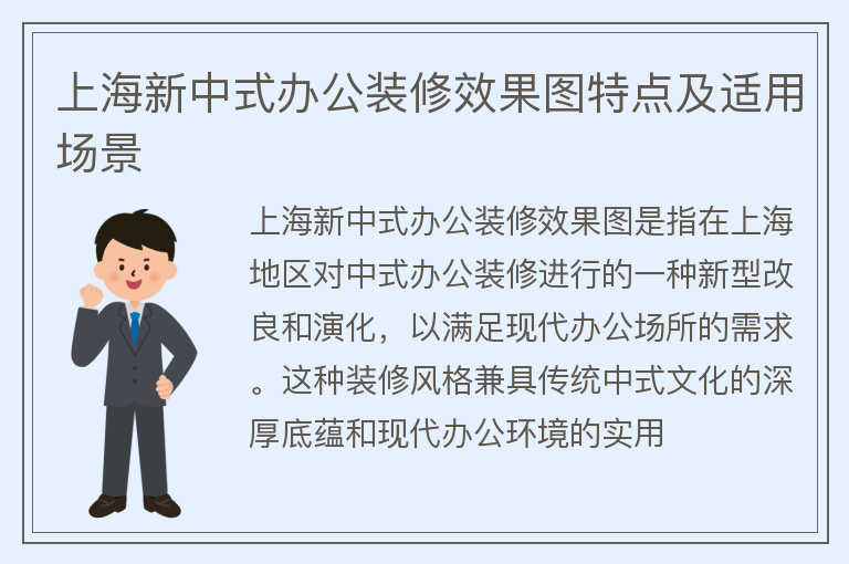 上海新中式办公装修效果图是指在上海地区对中式办公装修进行的一种新型改良和演化,以满足现代办公场所的需求。这种装修风格兼具传统中式文化的深厚底蕴和现代办公环境的实用......【点击详情】