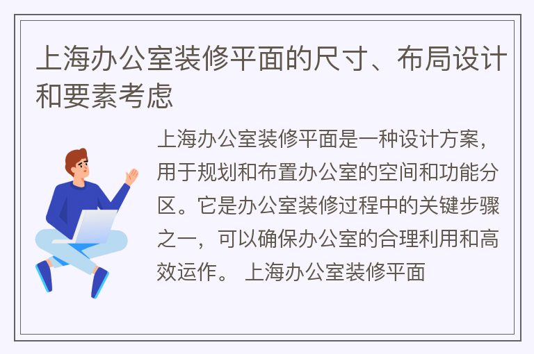 上海办公室装修平面是一种设计方案,用于规划和布置办公室的空间和功能分区。它是办公室装修过程中的关键步骤之一,可以确保办公室的合理利用和高效运作。 上海办公室装修平面......【点击详情】