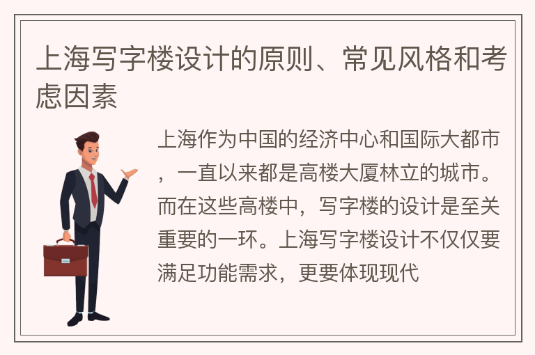 上海作为中国的经济中心和国际大都市,一直以来都是高楼大厦林立的城市。而在这些高楼中,写字楼的设计是至关重要的一环。上海写字楼设计不仅仅要满足功能需求,更要体现现代......【点击详情】