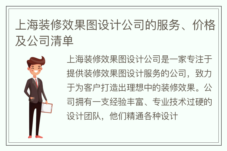 上海装修效果图设计公司是一家专注于提供装修效果图设计服务的公司,致力于为客户打造出理想中的装修效果。公司拥有一支经验丰富、专业技术过硬的设计团队,他们精通各种设计......【点击详情】