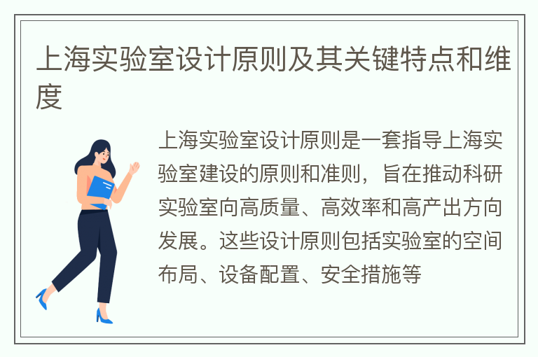 上海实验室设计原则是一套指导上海实验室建设的原则和准则,旨在推动科研实验室向高质量、高效率和高产出方向发展。这些设计原则包括实验室的空间布局、设备配置、安全措施等......【点击详情】